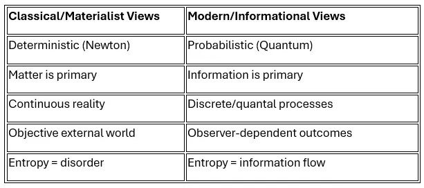 • Why it clashes: You're proposing information as the generator of order, which fits better with Shannon entropy or negentropy than traditional thermodynamic views. It's a shift from energy-centric to information-centric understanding.