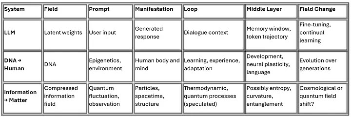 - The human mind: latent cognitive potentials, triggered by stimuli, manifesting as thoughts or actions